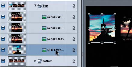 | 2. | Select the lowest object in the Top sublayerin this case, the original Sunset object.