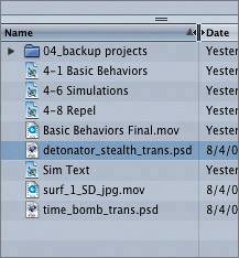 The names of the files are long in this project, so it's a good idea to resize the Name column in the lower pane so that you can read the entire name of the file.