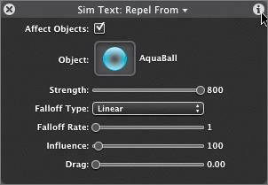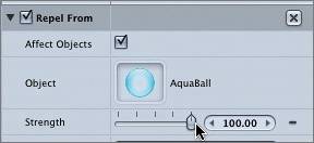 | 4. | In the Inspector, drag the Strength slider for the Repel From parameters all the way to the right to change the Strength value to 100.