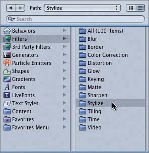 | 3. | Click the Stylize category folder to view the Stylize filters in the lower pane of the File Browser.