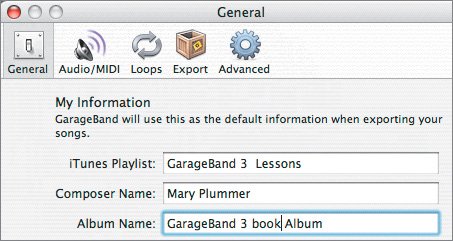 | | | 6. | Type GarageBand 3 book Album in the Album Name field.