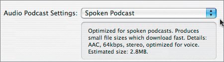 | 3. | From the Audio Podcast Settings pop-up menu, choose the Spoken Podcast setting.