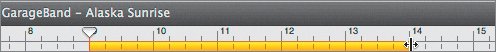 6. | While holding down the mouse button, drag through the Cycle Region Ruler to the 14th measure. Release the mouse.