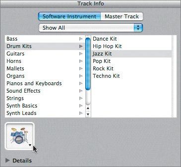 | 3. | In the Timeline, select the Jazz Kit 2 track header and select a new icon from the Track Icon menu.