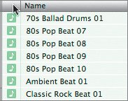 There are two symbols in this column: a green note, which indicates a Software Instrument loop, or a blue waveform, which indicates a Real Instrument loop.