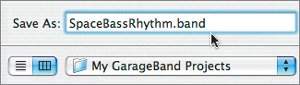 | 2. | Change the name to SpaceBassRhythm and save it to the My GarageBand Projects folder.