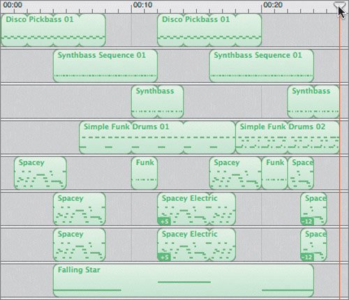 Intro music is traditionally 25 to 30 seconds in length, so you're right on target with this project. In fact, you have room to extend it a few seconds if you so desire. For now, you'll just add one more loop to the end.