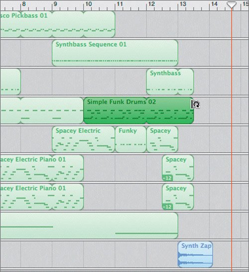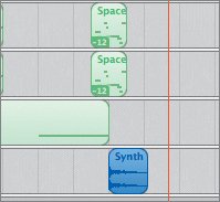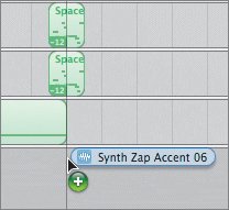 | 7. | Drag the Synth Zap Accent 06 loop from the browser to the space below the last track in the Timeline and release it at the beginning of the 13th measure.