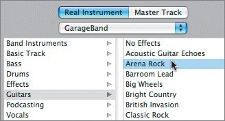 | 5. | In the Track Info pane, click Arena Rock to change the sound of the guitar amplifier.
