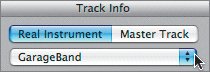 | Viewing Selected Instruments Before you save the instrument effect you created, let's take a look at the View Instrument pop-up menu at the top of the Track Info pane (below the Real Instrument and Master Track buttons).  With this pop-up menu, you can choose which instruments to view in the Track Info pane. 1. | Click the View Instrument pop-up menu to see the different options.