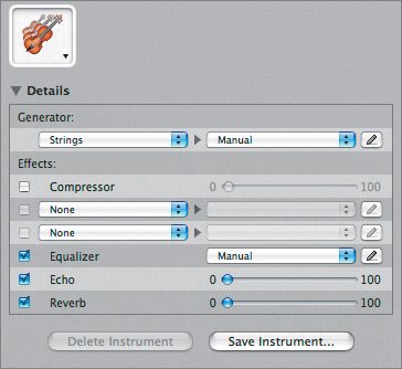 5. | Click the Details disclosure triangle in the lower-left corner of the Track Info pane to reveal the instrument details.