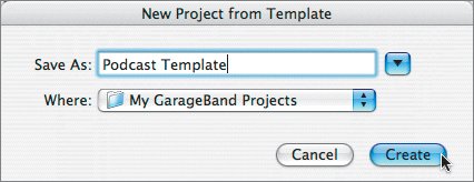 | 3. | Save the project as Podcast Template to your My GarageBand Projects folder.