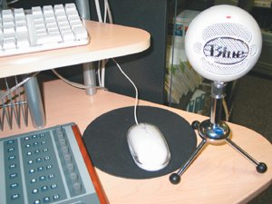 | Now that you are comfortable with showing and hiding the various panes you'll be using during this lesson, let's move on to setting up your podcast recording equipment. Note A project can include either a Podcast Track or a Video Track, but not both. If you try to show the Video Track for a project that contains a Podcast Track, a dialog appears asking if you want to replace the Podcast Track with a Video Track and vice versa. Choosing Podcast Recording Equipment Recording audio for a podcast in GarageBand 3 can be as easy or complicated as needed for your particular project. For example, if your podcast needs only one voice track, you can record the narration to an enabled Real Instrument track by connecting a microphone to your computer or by using the built-in microphone (if it has one). An iSight camera will also work because it includes a fully functioning microphone that is perfect for recording podcast audio as well as visuals. In fact, you can even record remote interviews with iChat users. Remember that the voice tracks you record for a podcast are Real Instrument tracks, so they follow the same recording rules you learned in Lesson 6. You can record a maximum of eight Real Instrument tracks and one Software Instrument track simultaneously. To record more than one track at a time, you'll need to use an external audio interface. Due to the popularity of GarageBand, a variety of third-party recording equipment is available. When I'm creating projects for these books, I try to find equipment that is both GarageBand-friendly and modestly priced. The podcast you'll be working on later in this lesson includes four Real Instrument voice tracks, plus a Software Instrument track used for sound effects. To record all four voice tracks at the same time, I used the Edirol FA-101, which is the same audio interface I used for recording Real Instruments in Lesson 6.  To record my narration, I used the new Blue Snowball USB microphone, which plugs into any USB port. It doesn't require any additional software or drivers, and it works well for these types of projects.  To trigger sampled MIDI sound effects during the podcast recording, I use the small Edirol PCR-A30 MIDI keyboard/audio interface. This is the same keyboard I used to record Software Instrument parts in Lesson 3.  Finally, I use the M-Audio iControl for GarageBand, which I have to confess I've been using throughout the process of writing this book.  The iControl is a GarageBand-specific USB device that allows you to select, mute, solo, record enable, pan, and adjust volume on tracks, as well as operate the transport controls, add effects, and adjust the master volume. For me, using the external iControl device to control the tracks and transport controls, and an external MIDI keyboard to trigger sounds, enables me to focus on the live podcast interviews without using the mouse or computer keyboard.   In addition to my various MIDI keyboards, I also keep an iGuitar handy for recording riffs, guitar parts, and song ideas. The iGuitar.USB by Brian Moore Guitars is an exciting development in the world of digital music recording. It is the first guitar to offer on-board, class-compliant USB audio to streamline the guitar-to-computer connection, eliminating the need for an external audio interface. In other words, you can use a standard USB cable to hook the iGuitar to the computer and record real guitar parts into GarageBand without any other equipment. More Info You can find more information on GarageBand accessories at www.apple.com/ilife/garageband/accessories.html. You can find out more about the iGuitar at www.brianmooreguitars.com. Again, let me stress that none of this equipment is necessary to create a podcast, and you can often get along with minimal equipment. I just wanted you to see some of the other options, especially if you plan to create a lot of enhanced podcast episodes or music projects. Before recording, make sure that your equipment is turned on and properly connected to the computer. For more specifics on the operation of your equipment, refer to the equipment manuals. Exploring the Vocal Track Presets GarageBand includes microphone settings and vocal enhancement effects that can be applied to a vocal track before or after recording. These effectsavailable in the Details area of the Track Info paneare designed to improve the quality of your vocal recordings. | | 1. | In the Timeline, double-click the Male Voice track header.