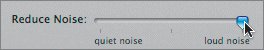 | 8. | Continue playback and drag the Reduce Noise slider from the lowest setting (quiet noise) to the highest setting (loud noise). Feel free to choose a setting in-between that you like better.