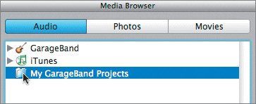 | 8. | In the Media Browser, click the folder you just added (either My GarageBand Projects or Lesson_04).