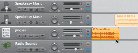 | 10. | Make sure the Jingles track is selected, then choose Edit > Paste, or press Cmd-V to paste the project at the playhead position.