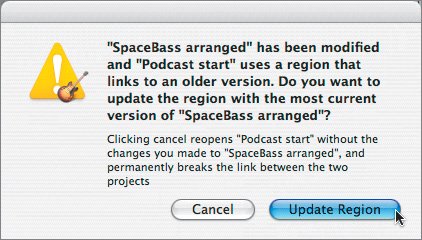 Note If you choose not to apply the changes when you return to the project you started from, the link between it and the imported project is permanently broken. Also, extending the length of the imported project can result in regions being deleted when you apply the changes to the project it is imported into. There's just one more thing to do: add the SpaceBass project to the end of the project. No problem. You'll just copy the file and paste it at the end of the song.