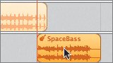 | 9. | Hide the editor if it is showing. Select the SpaceBass project at the beginning of the Timeline and choose Edit > Copy, or press Cmd-C. Then move the playhead to 00:05:30 in the Timeline.