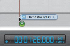 | 8. | Drag the Orchestra Brass 03 loop from the browser to the empty space below the Radio Sounds track and release it at the playhead position.