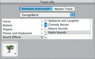 GarageBand 3 includes four different Software Instrument sound effects instruments with preassigned effects for different MIDI keys. Using this feature, you can play the MIDI sounds live during your podcast recording, or you can record them later into the Timeline.