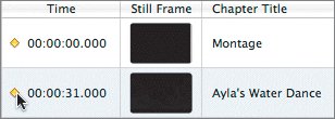 | Project Tasks Now it's your turn to add jingles to the remaining three markers. I'll give you specific jingles to use for this exercise, but feel free to try other combinations after you finish the lesson. Use the All category in the Jingles column so you'll be able to browse all of the different jingles. To go back and forth between the marker info in the editor and the Podcast Sounds in the Loop Browser, select the Video Track in the Timeline, then use the shortcuts Cmd-E for editor and Cmd-L for loop. Remember, each marker will be a new chapter on the DVD, so the song needs to start right after the marker. If you start the song before the marker, it won't start cleanly when the chapter fades in. Most of the jingles have a few frames of blank space at the end, so if you need to overlap the end of one loop to add another, that's fine. You can also place them on separate tracks if you'd like to separate the jingles. Ayla's Water Dance marker Campfire jingle Tail Spin marker Carousel jingle 1st Grape marker Acoustic Sunrise jingle When you're finished, play the project to see how the video is enhanced by the music. Note If you did not complete any of the previous steps, feel free to open the project 9-2 Movie with Music and save it to your My GarageBand Projects folder. |