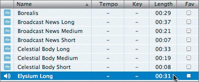 | | | 12. | Find the Length column in the results list of the Loop Browser and check the length of the Elysium Long jingle.