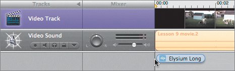 Note If you select a jingle that isn't the exact length, you can always resize it to make it shorter or loop it to make it longer, as you would any Real Instrument region. | 13. | Drag the Elysium Long jingle from the Loop Browser and drop it at the beginning of the Timeline, below the Video Sound track.