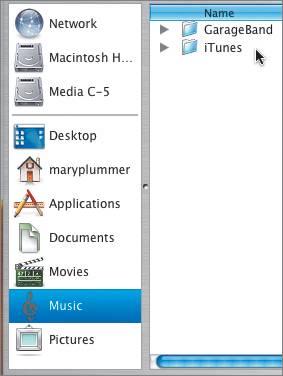 You'll see the GarageBand and the iTunes folders. The GarageBand folder is the default location for saved projects.