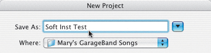 | Launch GarageBand from your Dock, if it is not already open. GarageBand will automatically open the last project. Let's create a new project, which will replace the current project in the window. There are three ways to open a new song: 1. | Choose File > New to open a new project.