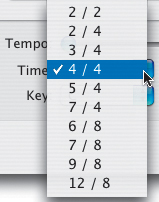 | 3. | Click the Time pop-up to see the various time signature choices.