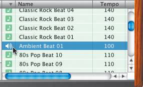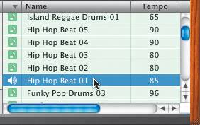 Note If you want to reverse the order of a column, just click the column header again. | 6. | Scroll to locate the Software Instrument loop called Hip Hop Beat 01.