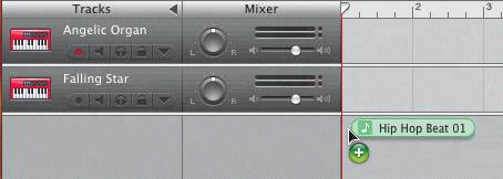| 7. | Click-drag the Hip Hop Beat 01 loop from the browser to the beginning of the Timeline below the Falling Star track.
