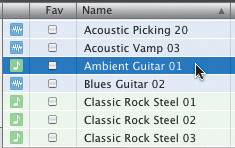 | 3. | Locate the Ambient Guitar 01 loop in the results list.