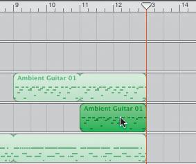 | 8. | Option-drag the Ambient Guitar 01 region to the track below (the Big Electric Lead track) to double the region.
