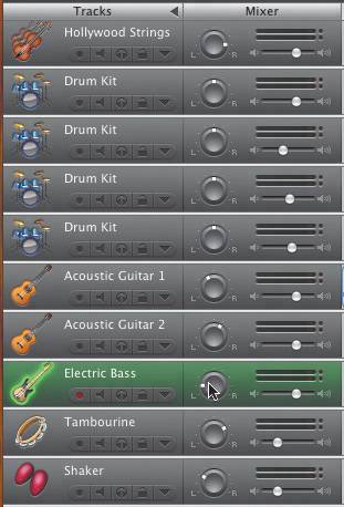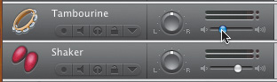 | 4. | Click-drag the Volume slider on the Tambourine track to the left, so that you lower it by half the distance to the left.