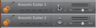 | 3. | Locate the Acoustic Guitar 2 track and click the first dot to the right of center on the Pan wheel to place the sound.