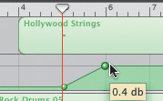 | 3. | Click-drag the Hollywood Strings track Volume slider all the way to the left and watch the movement of the Volume curve.