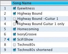 | 2. | Click the box for Highway Bound -Guitar1 to disable that song.