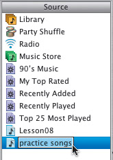| 8. | Double-click the new untitled playlist in the Source pane of iTunes, and change the name of the playlist to practice songs.