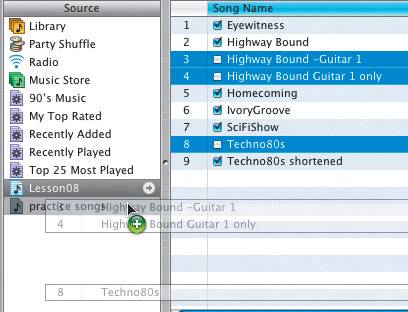 | 12. | Click-drag any of the selected songs to grab all three selections and drag them to the practice songs playlist.