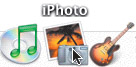 | Your playlist is now ready for action. At this time, you could burn it to a CD, convert the songs to MP3, or use the playlist with the other iLife applications. Using Your Playlist for an iPhoto Slideshow Let's see how to access the playlist for a slideshow in iPhoto. One of the most frustrating things about the previous versions of iPhoto was the limitation of one song for a slideshow. Any song, no matter how good it is, can get old after a few plays, especially during a slideshow. Now you can use your entire playlist (or whichever songs are active in iTunes) for your iPhoto slideshow. iPhoto now gives you a choice of either one song or an entire playlist. Let's create a slideshow and use your Lesson08 playlist for the music. You can use your own pictures for the slideshow. 1. | Click the iPhoto icon in the Dock to launch iPhoto.