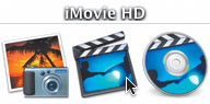 | As you can see, it is very easy to use your GarageBand songs with iPhoto. Now let's see how to access the playlist in iMovie. More Info You can get more detailed information on the new features available in iPhoto '05, including adding audio to your iPhoto slideshows, in the iPhoto Help menu and iPhoto documentation that comes with the software. Using Your Playlist with iMovie HD To use your GarageBand songs in iMovie, all you need to do is click the Audio button and select the song you want to use from the Lesson08 playlist in iTunes. You can import audio into iMovie in any format that works with QuickTime. Two of the most common formats are AIFF and MP3. Your songs were exported from GarageBand to iTunes in AIFF format. 1. | Click the iMovie HD icon in your Dock to launch iMovie.