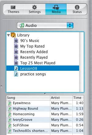 | 3. | Click the pop-up menu at the top of the Audio pane and select your Lesson08 playlist from iTunes.