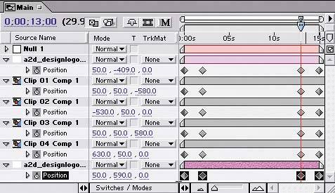 | 3. | Click the first Position property's name to select all of that layer's Position keyframes, and then copy (Edit > Copy) the layer's keyframes.