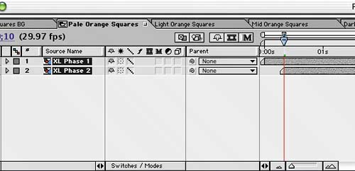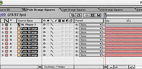 | 11. | Open the Dark Orange Squares composition, and pre-comp the first seven layers into a new comp named D Phase 1.