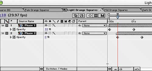 | 5. | Go to time 0;15, select the Mid Orange Squares layer, and press [.