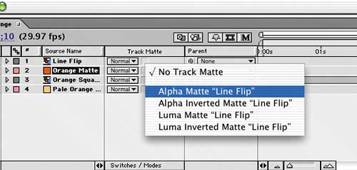 | 4. | Set the Dark Orange layer's Track Matte to Alpha Matte "Line Flip".