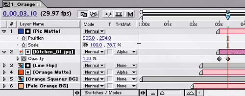 | 5. | Set the Kitchen_01 layer's Track Matte to Alpha Matte "Pic Matte".