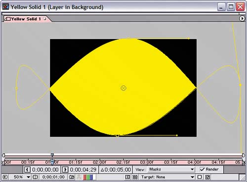 | 4. | Go to time 1;00, and reposition one or more of the mask handles to create the next state of the solid's animation. We dragged the top mask handle to the bottom and vice versa to create a wave effect.
