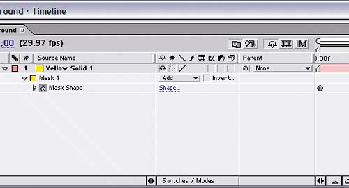 Tip If you need to resize and reposition the mask after initially drawing it, be careful that you only change the mask and don't reposition or resize the solid layer. It's a little awkward, but all you need to do is make sure the mask is selected under the solid layer in the Timeline before you drag any of the mask's handles. Masking the solid layer  | 3. | Make sure you're at time 0;00. Select the solid layer, press M to display its Mask Shape, and click the stopwatch next to it to create a keyframe for it.